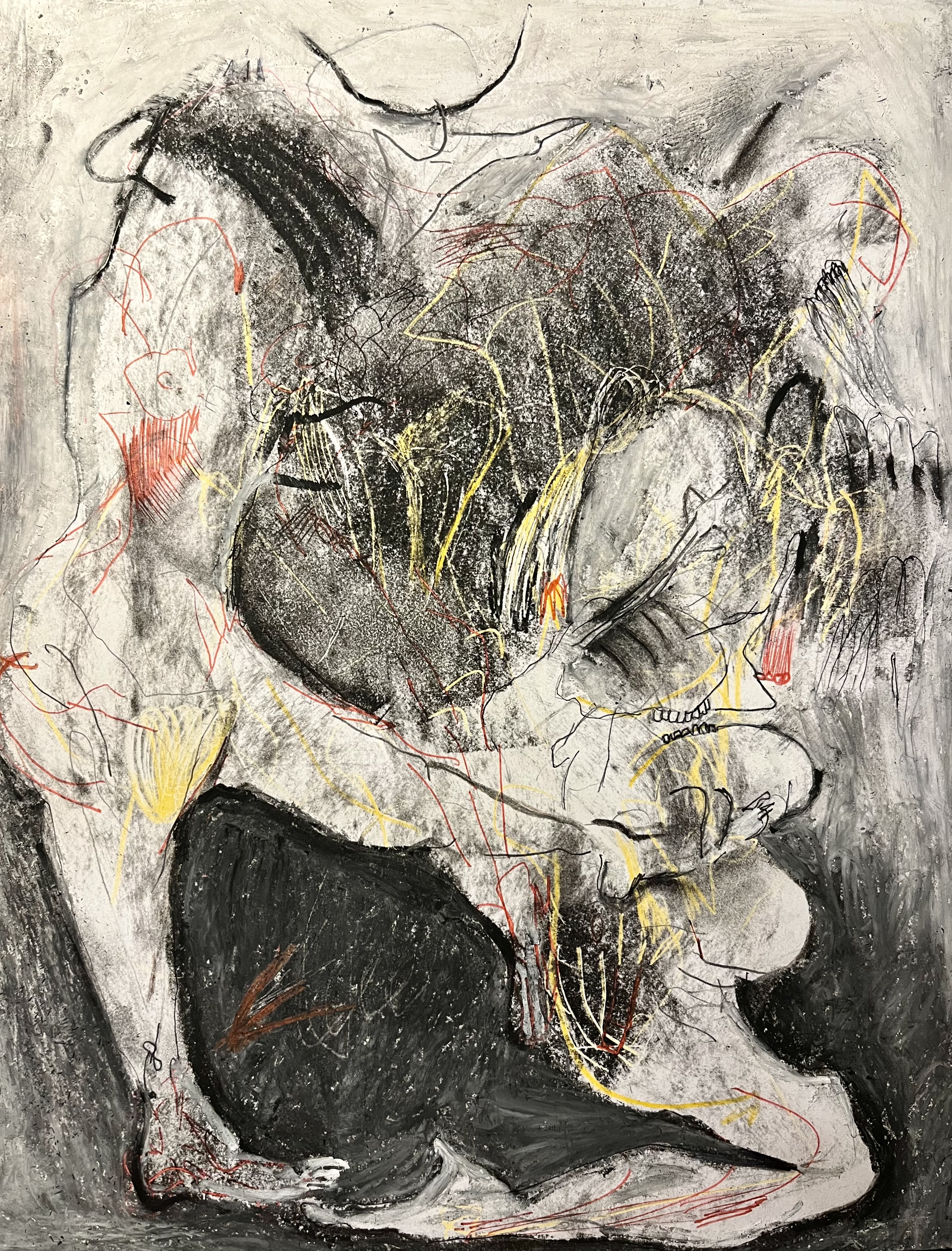 Drover, 14” x 17”, oil pastel, ink, colored pencil, and charcoal on paper, 2024