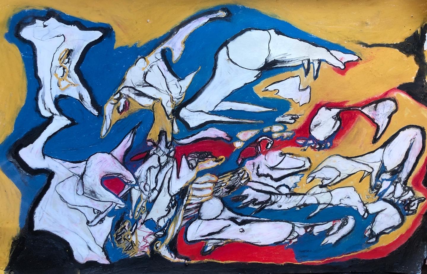 Moving Parts, Falling Back Into Place, charcoal and chalk on paper, 11” x 14”, 2021