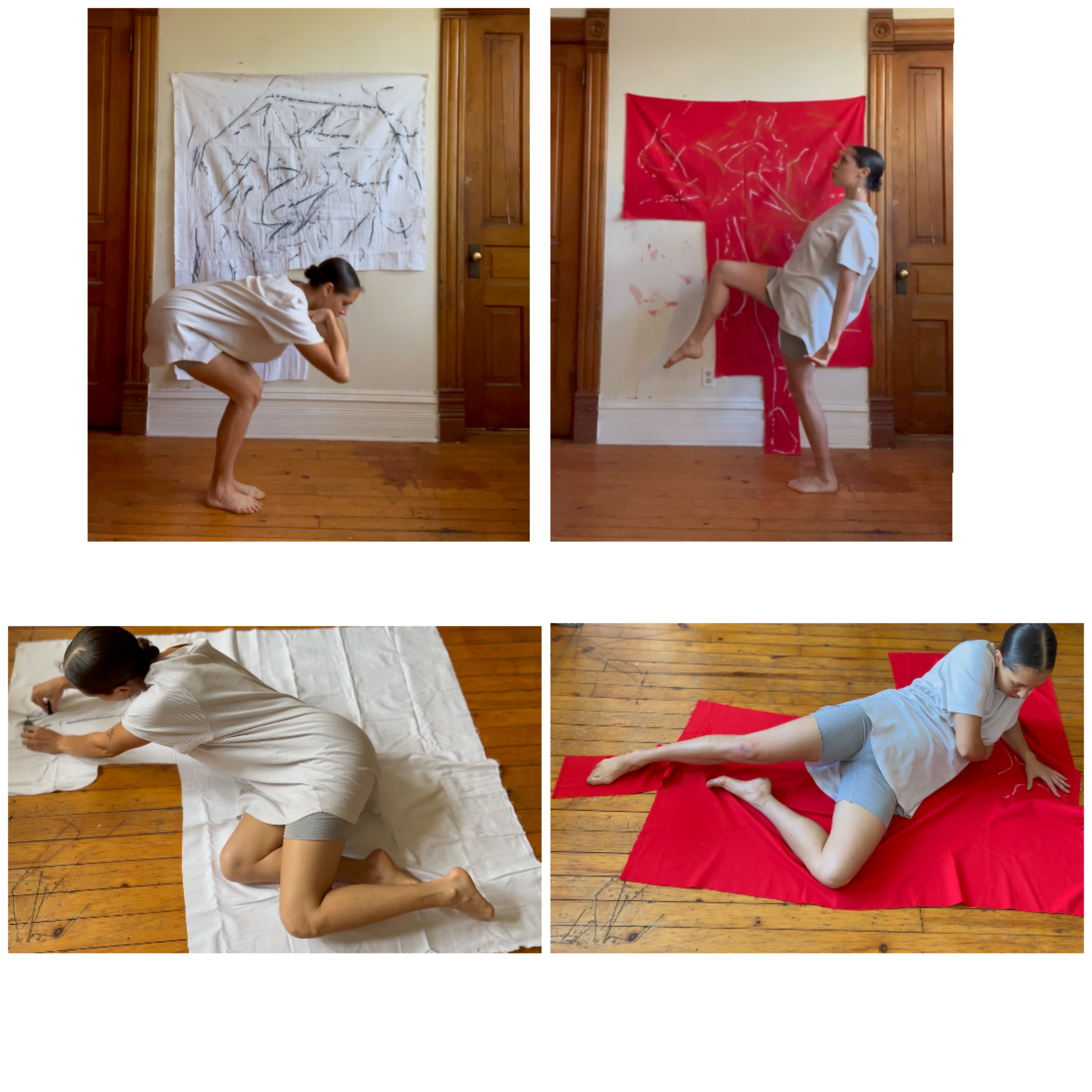 Perimeters,Charcoal and pastel on fabric (4.5' x 6'). Video of performance piece (Still from a 7 minutes long performance), 2022