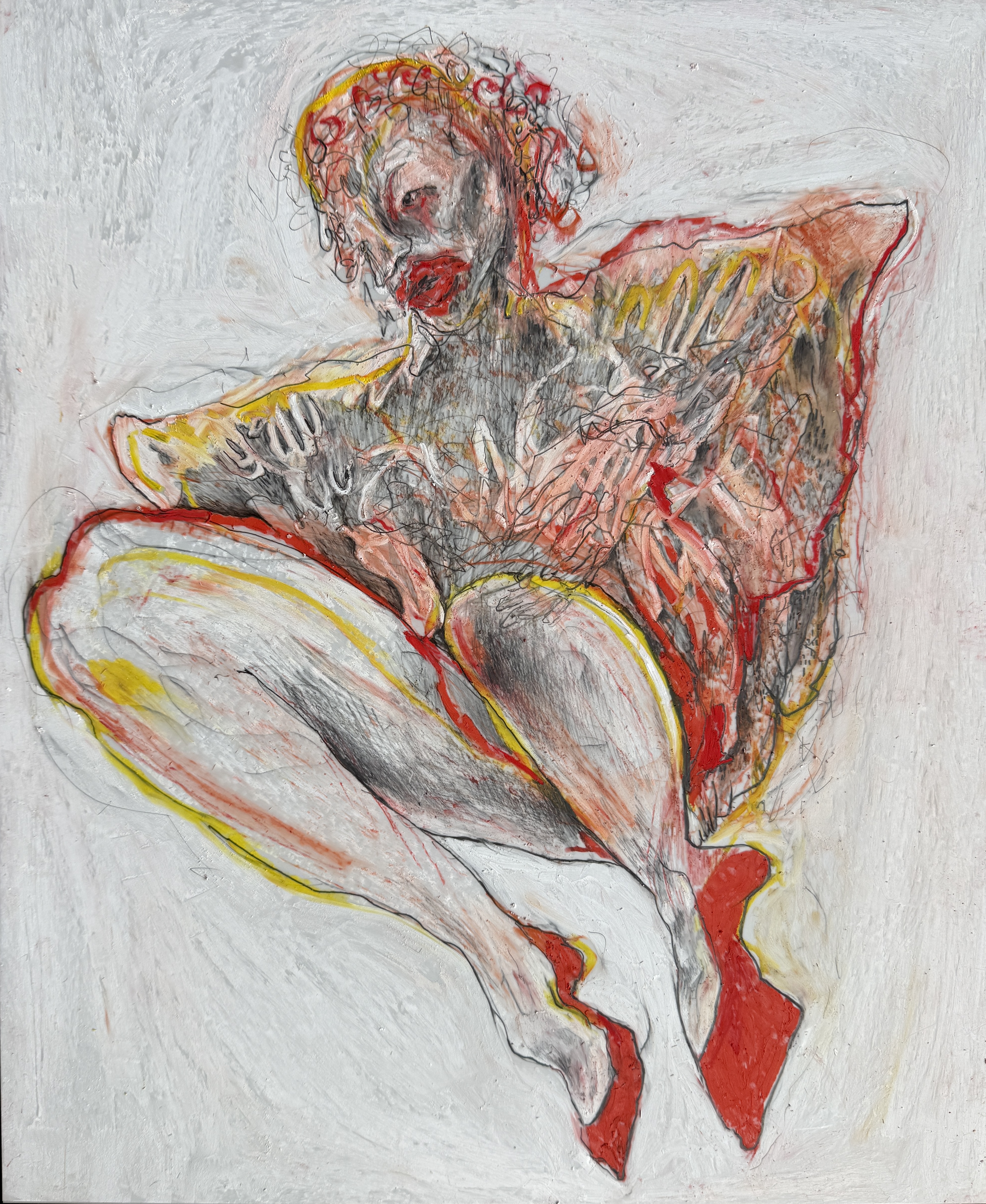 Ripping Through, oil pastel and graphite on dura-lar, 14" x 17", 2025